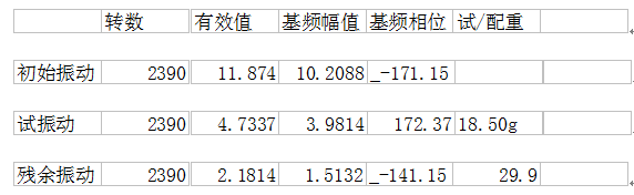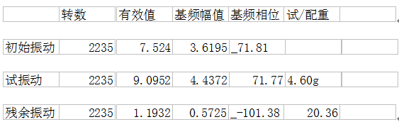 綜上所述,設(shè)備振動通過現(xiàn)場動平衡校正達(dá)到合格范圍之內(nèi)。