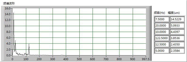 e、根據位移頻譜顯示,峰峰值較小,運行正常