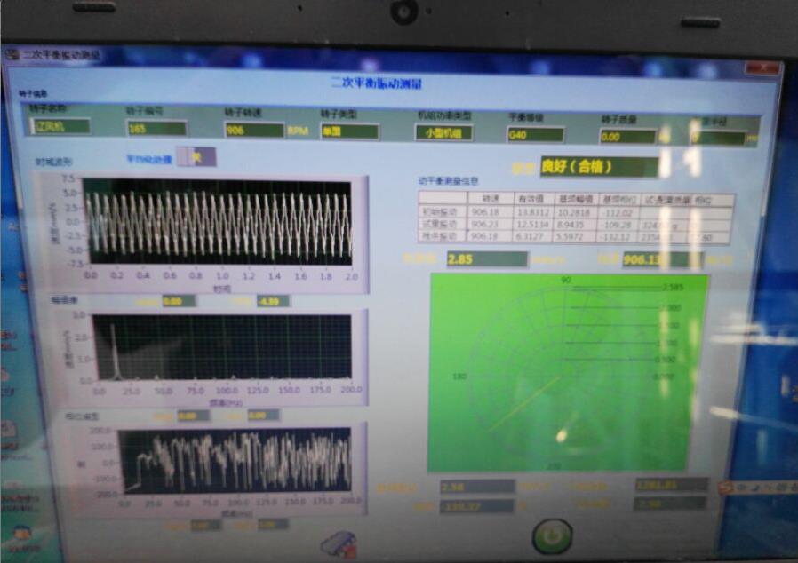 ???? 一次平衡后振動有效值為5.5972mm/s,進行二次現(xiàn)場動平衡校正