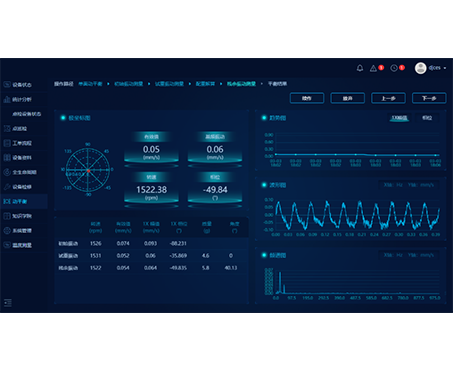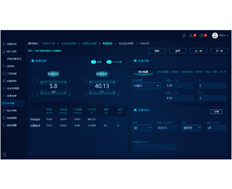 在此之上,系統(tǒng)支持軸承診斷功能,以及在線(xiàn)動(dòng)平衡功能,初次轉(zhuǎn)子標(biāo)定后, 可在設(shè)備運(yùn)行中便可知道轉(zhuǎn)子動(dòng)平衡的配重信息。